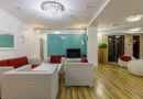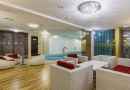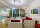 Номер «Ока Премиум» предназначен для больших компаний до 14 человек. Никому не будет тесно – кроме зала с большим бассейном, в номере есть мини-кухня и комната отдыха с мебелью и всей необходимой техникой.